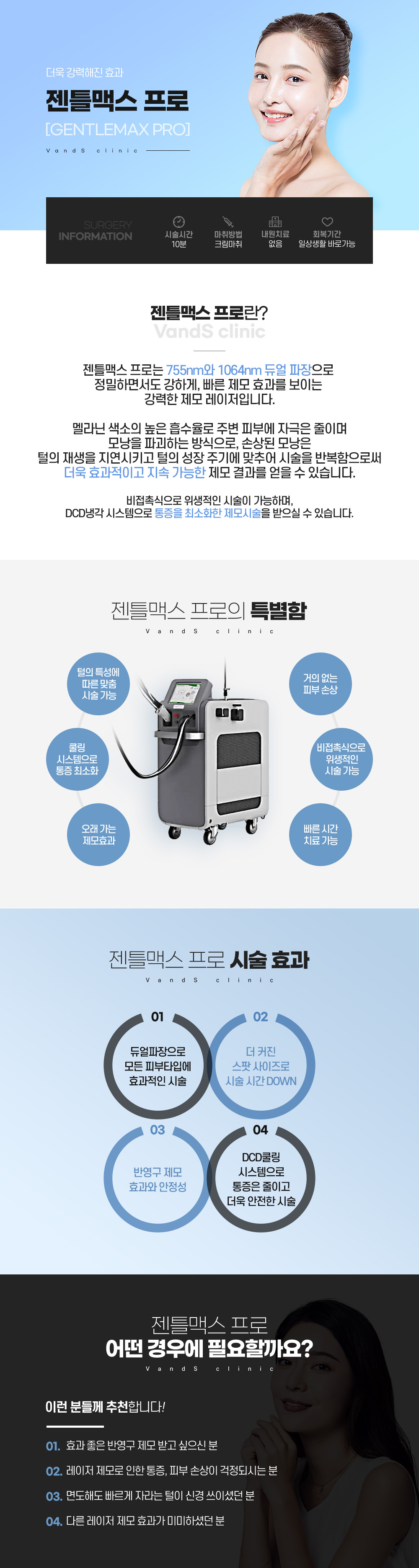 A. 반복 시술 시 반영구적으로 모발의 굵기, 올라오는 주기가 감소합니다. 시술 이후 개인에 따라 모가 다시 올라올 수 있으며, 이 때 추가적인 레이저제모 시술을 통해 제모 효과를 더 오래 누리실 수 있습니다.